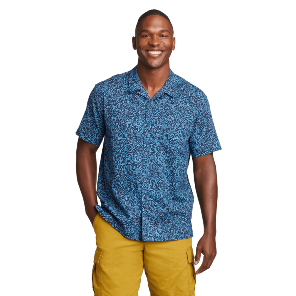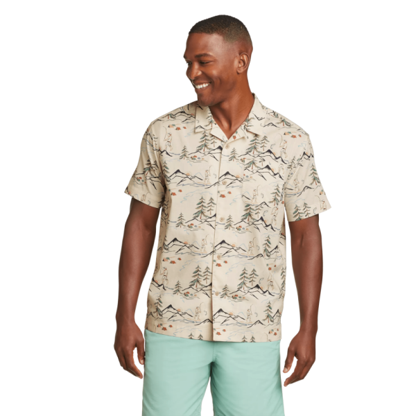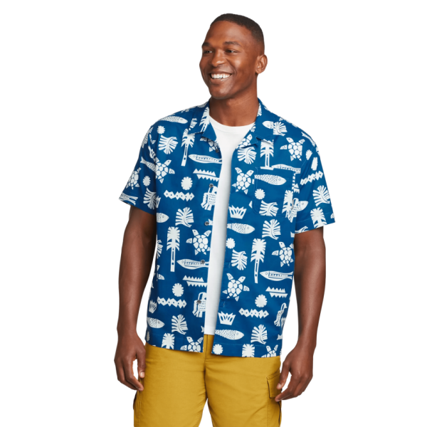 The naturally breathable cotton in this short-sleeve camp shirt is pre-shrunk to ensure maximum comfort from Day One. The cool solution to hot weather.