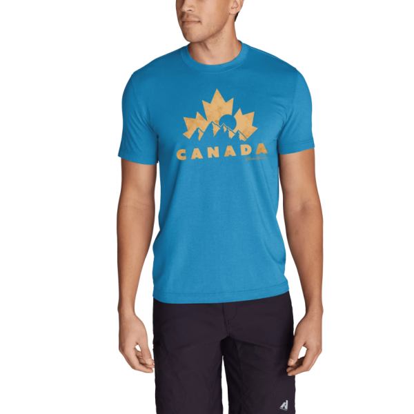 Our EB Canada Maple Leaf T-Shirt is made with a soft and comfortable blend of cotton and polyester fabric for all-day comfort.