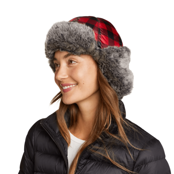 The water-repellent polyester shell fabric, ultrasoft faux fur lining, and ultra-warm down insulation ensure that this trapper hat delivers serious cold-weather comfort, along with fun style.