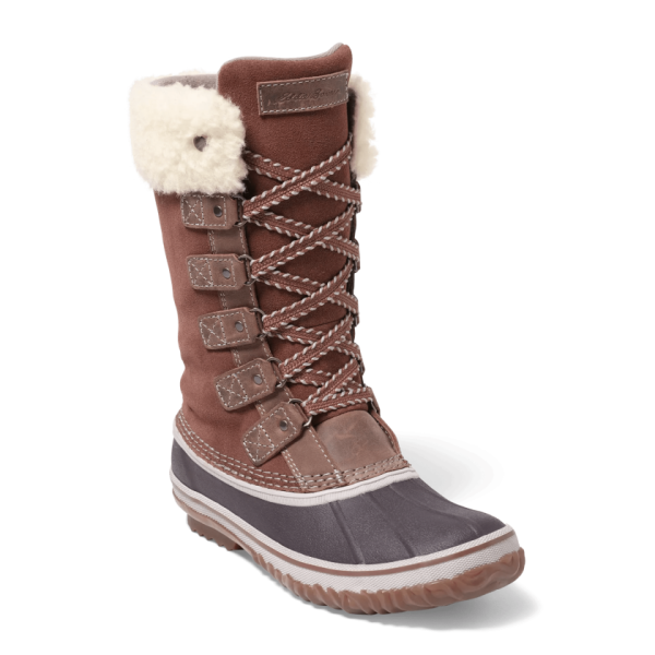 First produced by Eddie Bauer in the 1950s, now updated for the 21st century. An upper of waterproof leather, seam-sealed construction, and a vulcanized rubber shell keeps your feet dry in the wettest, muddiest conditions. ThermaFill® insulation provides essential warmth in the cold. Deluxe version features a faux fur cuff and distinctive laces for extra touches of flair and style.