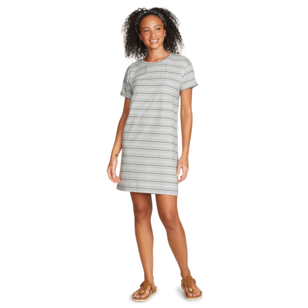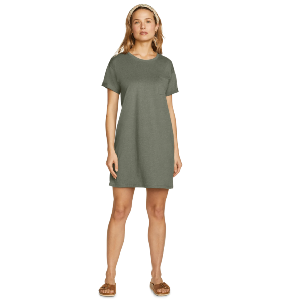 Soft, moisture-wicking fabric makes this knee-length T-shirt dress an all-day favorite. Its simple, flattering lines and easy-care convenience also make it a great traveler.