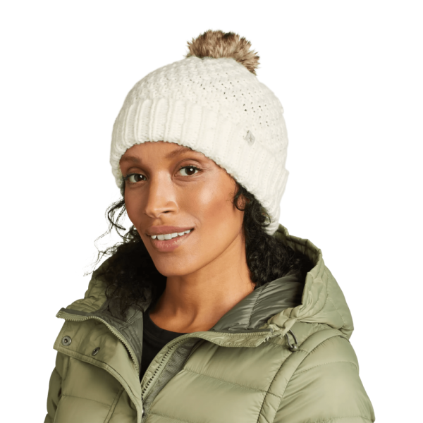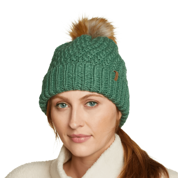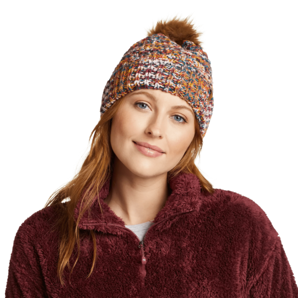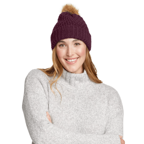 With its faux-fur pom and soft acrylic yarns, this cuffed beanie combines functional warmth with just a touch of sass.
