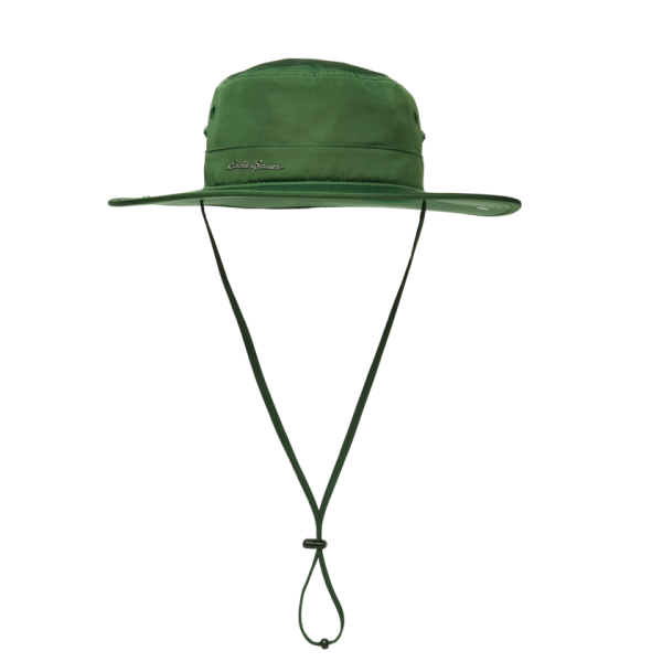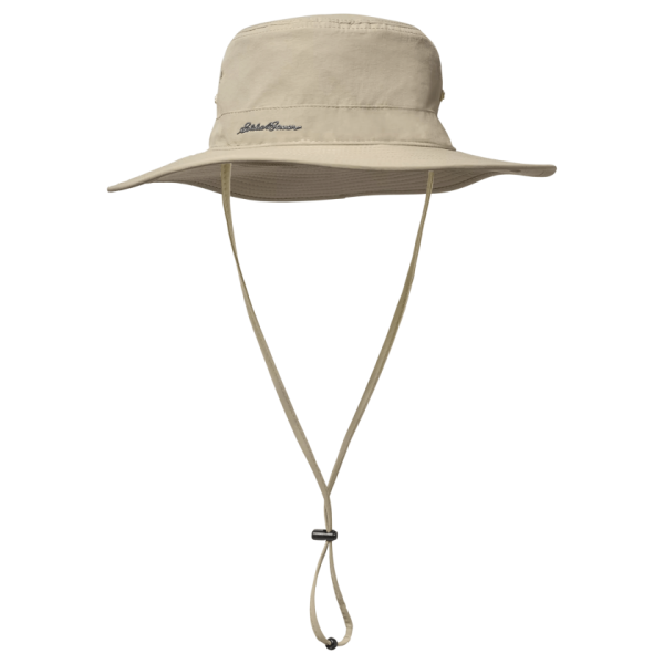 This lightweight, nylon/polyester brimmed hat has built-in UPF sun protection plus a moisture-wicking sweatband for comfort. Plastic snaps on the sides let you fold up and secure the foam brim.