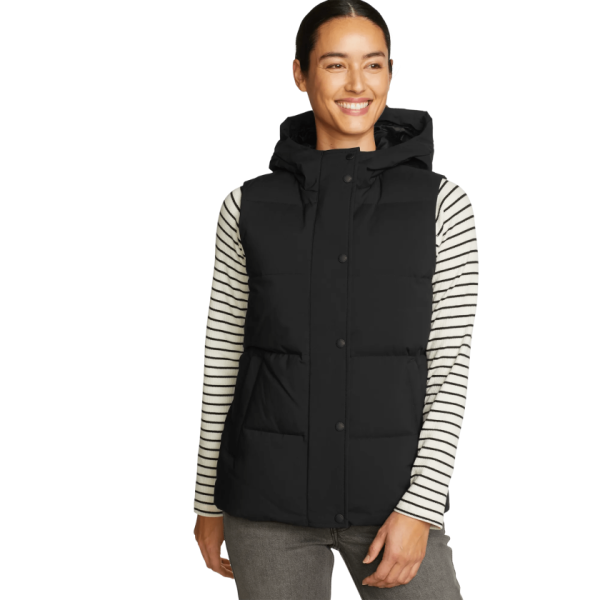 Lightweight, warm, and water-repellent, this down vest offers cross-seasonal comfort whether worn over a light shirt in mild weather or under a parka in deep winter.