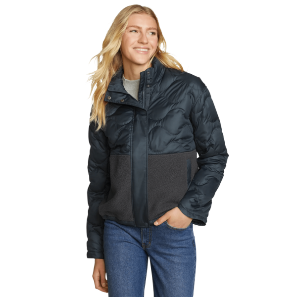This richly textured jacket features 650-fill premium down insulation in the quilted upper body and 300-weight fleece in the lower body for winning combination that’s ultra warm and cozy. It’s the perfect choice for transitional fall weather and cold winter days.