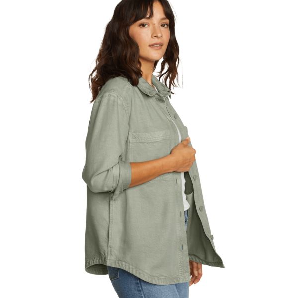 The perfect lightweight layer for chilly days, this soft and comfortable overshirt looks as great with a dress or skirt as it does with your favorite jeans.
