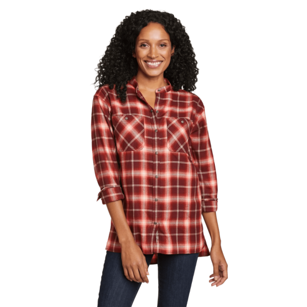 Our Fremont Flannel Collarless Tunic is a new style that’s made with a blend of cotton and sustainable TENCEL™ fibers for soft effortless comfort you can feel good about wearing.