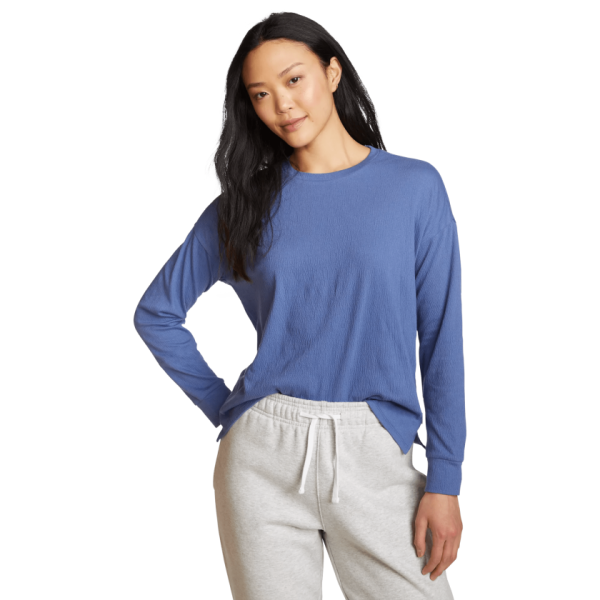 Our Thistle Textured Crew combines lightweight, crinkled fabric with long sleeves and a crew neckline, creating the perfect blend of style and comfort for everyday wear.