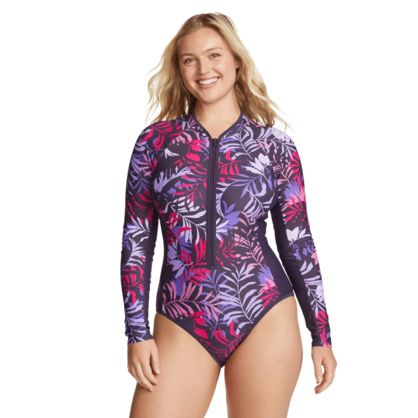 This long-sleeve one-piece swimsuit is ready for your adventures by the pool or out on the water! The long sleeves and collar offer full coverage and protection from the sun, whether you’re kayaking or surfing.